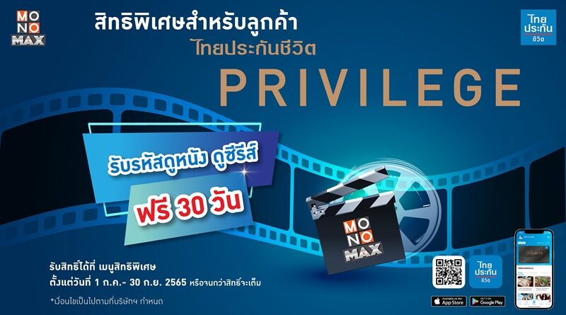 สมาชิกไทยประกันชีวิต PRIVILEGE” รับสิทธิ์ดู “MONOMAX” ฟรี 1 เดือน