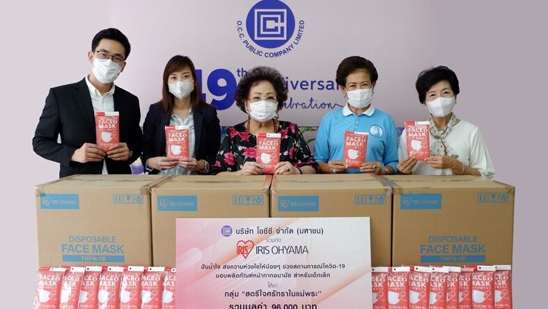 กาญจนา สายสิริพร ประธานกรรมการ บริษัท โอซีซี จำกัด (มหาชน) พร้อมด้วย มงคล เปรมธีรสมบูรณ์ ผู้จัดการ บริษัท ไอริส โอยามะ (ประเทศไทย) จำกัด มอบผลิตภัณฑ์หน้ากากอนามัย IRIS OHYAMA สำหรับเด็กเล็ก ให้แก่ กลุ่ม“สตรีใจศรัทธาในแม่พระ” รวมมูลค่า 96,000 บาท เพื่อส่งต่อความห่วงใยให้กับน้อง ๆ โดยมีกุลชลี เสริมทวีทรัพย์ ประธานกลุ่ม “สตรีใจศรัทธาในแม่พระ” เป็นตัวแทนรับมอบ ณ อาคาร โอซีซี เมื่อเร็วๆนี้