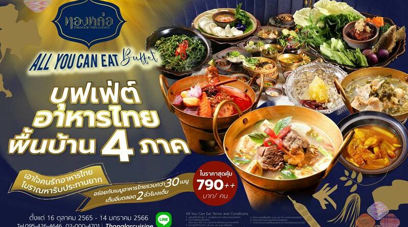 ร้านอาหารไทย “ทองหล่อ” ขอแนะนำ “All you Can Eat” บุฟเฟ่ต์อาหารไทยพื้นบ้าน 4 ภาค เอาใจคนรักอาหารไทยโบราณหารับประทานยาก ในราคาสุดคุ้ม 790++ บาทต่อท่าน ตั้งแต่ 16 ตุลาคม 2565 – 14 มกราคม 2566