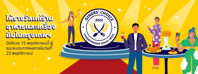 แคมเปญ Diners’ Choice จัดขึ้นเป็นปีแรก โดยเชิญชวนให้คนไทยร่วมโหวตร้านอาหารยอดเยี่ยม โดยแบ่งเป็น 7 หมวด จากร้านอาหารไฟน์ ไดนิ่ง, มิชลินสตาร์ และร้านอาหารชั้นนำอื่นๆ มากมายกว่า 500 ร้านทั่วกรุงเทพฯ และภูเก็ต เพื่อร่วมเป็นส่วนหนึ่งในการสร้างคู่มือแนะนำร้านอาหารที่ตรงกับความต้องการของทุกคนให้สามารถค้นหาร้านอาหารที่ใช่ ได้อย่างง่ายดาย