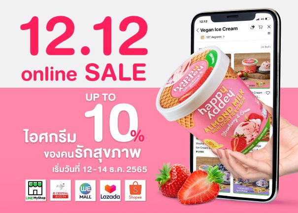 แฮปปี้ แอดดี้ ไอศกรีมวีแกนเพื่อคนรักสุขภาพเกรดพรีเมี่ยม ผลิตจากนมอัลมอนด์คั้นสดเด็มเมล็ดที่ให้ประโยชน์ต่อร่างกาย ไม่มีน้ำตาลทราย ไขมันทรานส์ และคอเลสเตอรอล จัดโปรโมชั่น 12.12 Online Sale ลดส่งท้ายปีสูงสุด 10% ตั้งแต่วันที่ 12 – 14 ธันวาคม 2565 เฉพาะช่องทางออนไลน์ Shopee,  Lazada, Wemall, Line My Shop