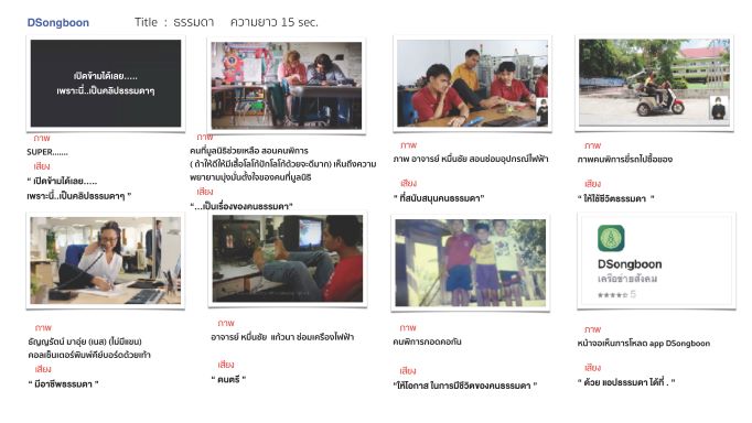 1.เรื่อง “เราทำได้” ความยาว 90 วินาที เนื้อหาแสดงให้เห็นความสามารถของผู้พิการในการใช้ชีวิตเยี่ยงคนปกติทั่วไป ธีมคือ “แม้เราทุกคนไม่ได้เกิดมาสมบูรณ์ แต่เราก็มีคุณค่าไม่ได้น้อยไปกว่ากัน” โดยจะโปรโมทผ่าน Facebook และ Youtube เพื่อเน้นการ share และกดlike สามารถแชร์ไปในสื่อต่างๆ ทั้ง website และ line official ของมูลนิธิฯ รวมทั้งของทาง DSongboon และ Ruamrudee International School