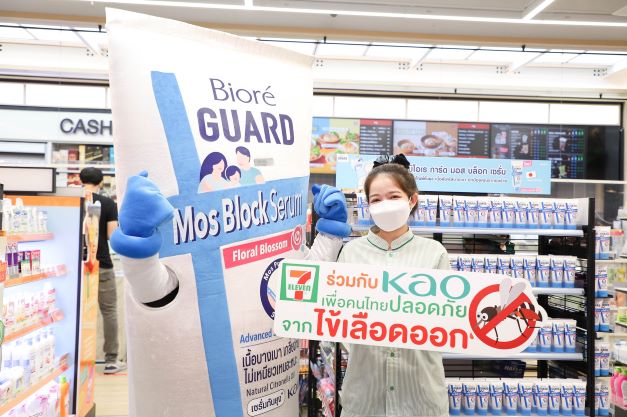 บริษัท คาโอ อินดัสเตรียล (ประเทศไทย) จำกัด ร่วมกับบริษัท ซีพี ออลล์ จำกัด (มหาชน) ชูความสำเร็จในแคมเปญเพื่อคนไทยปลอดภัยจากไข้เลือดออก จากการจำหน่ายผลิตภัณฑ์ป้องกันยุง บิโอเร การ์ด มอส บล็อก เซรั่ม* 1 หลอดจาก 7-Eleven ทุกสาขาทั่วประเทศ ทั้งช่องทาง เซเว่น เดลิเวอรี่ และ ALL ONLINE เท่ากับบริจาค 5 บาท เพื่อสมทบทุนซื้อผลิตภัณฑ์ป้องกันยุงหลอดใหม่ให้แก่โรงพยาบาล โดยหลังจากเสร็จสิ้นโครงการ ได้นำผลิตภัณฑ์จำนวน 10,000 หลอด มูลค่า 690,000 บาท มอบให้แก่สถาบันสุขภาพเด็กแห่งชาติมหาราชินี เมื่อเดือนที่ผ่านมา