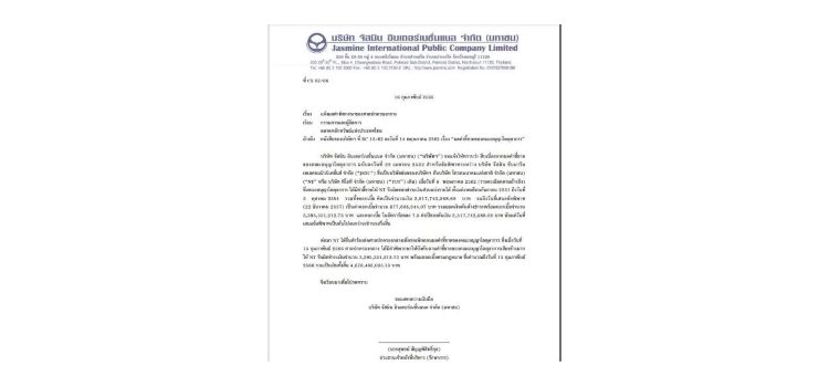 JAS แจ้งข่าวตลาด เรื่องผลคำพิพากษาของศาลปกครองกลางพิพากษาให้บังคับตามคำชี้ขาดของคณะอนุญาโตตุลาการเสียงข้างมาก ให้ NT รับผิดชำระเงินจำนวน 3,395,351,212.73 บาท พร้อมดอกเบี้ยตามกฎหมาย ซึ่งคำนวณถึงวันที่ 15 กุมภาพันธ์ 2566 รวมเป็นเงินทั้งสิ้น 4,678,488,033.13 บาท