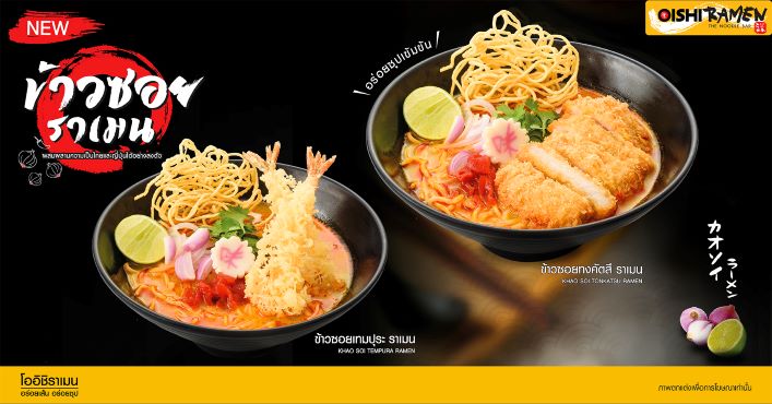 โออิชิ ราเมนชวนอร่อยแบบเหนือ ๆ กับเมนูฟิวชัน ใหม่ !!! ข้าวซอยราเมนฟินเน้น ๆ เส้น-ซุป-เครื่อง ครบสูตร