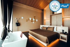 พูลวิลล่าขนาดย่อมที่มองเห็นชายหาดเหมาะอย่างยิ่งสำหรับคู่รักที่ต้องการวันหยุดพักผ่อนแบบเงียบสงบ เป็นพูลวิลล่าในโรงแรมบูติกที่สร้างใหม่ ตั้งอยู่ใจกลางบ้านบางมะขาม เป็นวิลล่าโมเดิร์นที่ผสมผสานกับเครื่องไม้ในพื้นที่และตกแต่งในสไตล์เขตร้อน