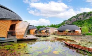 วิลล่าที่มีรูปทรงเหมือนหลังเต่า อันเป็นเอกลักษณ์สุดพิเศษ เหมาะสำหรับคู่รักที่ต้องการทริปพักผ่อนแบบเงียบสงบ วิลล่าสร้างอยู่บนบึงบัวในหัวหิน ล้อมรอบด้วยธรรมชาติของเขาเต่า และยังใกล้กับหาดทรายน้อยอันสวยงาม