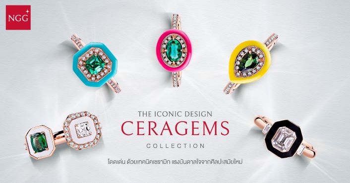 1. Ceragems คอลเลกชันสุดพิเศษ ที่มาพร้อมกับเทคนิคเซรามิก สีสันโดดเด่นสะดุดตา คงทนต่อรอยขีดข่วน เป็นเทคนิคสุดพิเศษที่ทาง NGG JEWELLERY ตั้งใจรังสรรให้เข้ากับซัมเมอร์นี้ โดยผ่านการออกแบบอย่าง ลงตัวกับอัญมณีและเพชรแท้ในสไตล์ศิลปะสมัยใหม่ เพื่อเพิ่มความสนุกสนานในการออกแบบไลฟ์สไตล์ในแต่ละวันของคุณ และยังคงไว้ซึ่งความหรูหราในแบบ NGG