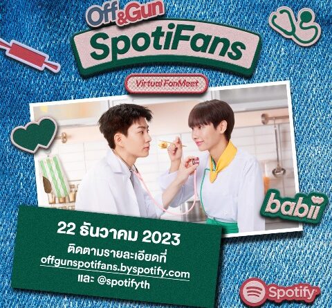 Spotify เตรียมจัดงาน Fan Meet ออนไลน์ครั้งแรกกับ ‘ออฟ-กัน’ คู่จิ้นสุดปังจากซีรีส์ ‘Cooking Crush อาหารเป็นยังไงครับหมอ’ พร้อมกิจกรรมสุดเอกซ์คลูซีฟภายใต้ชื่อ ‘Spotify Presents Cooking Crush Off & Gun Virtual Fan Meet’ ซึ่งจะจัดขึ้นในวันที่ 22 ธันวาคมนี้ โดยเปิดโอกาสให้แฟน ๆ ที่เป็นผู้ใช้งานพรีเมียมบน Spotify จากทั่วโลกเข้ามาลงทะเบียนร่วมสนุกลุ้นรับสิทธิ์กันได้