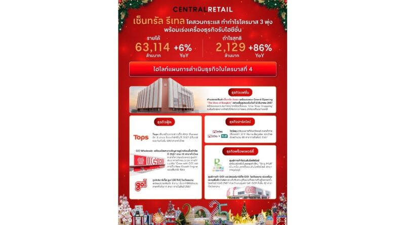 เซ็นทรัล รีเทล โตสวนกระแส ทำกำไรไตรมาส 3 พุ่ง 86% พร้อมเร่งเครื่องธุรกิจรับไฮซีซั่น