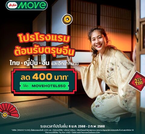AirAsia MOVE ซูเปอร์แอปด้านการเดินทางและการท่องเที่ยวครบวงจรชั้นนำในภูมิภาคอาเซียนตั้งแต่การเดินทางทางอากาศจนถึงภาคพื้นดิน พร้อมช่วยคุณจองตั๋วเครื่องบินและที่พักชั้นนำในจุดหมายปลายทางยอดนิยมจากทั่วทุกมุมโลก ไม่รอช้าส่งดีลต้อนรับปีใหม่จีนและกระแสการท่องเที่ยวอันร้อนแรง! ด้วยดีลส่วนลดโรงแรมสุดคุ้ม! ด้วยส่วนลด 400 บาท! เพียงใส่โค้ด: [MOVEHOTELS50] เมื่อมียอดใช้จ่ายขั้นต่ำ 2,300 บาท สำหรับที่พักในไทย ญี่ปุ่น จีน และโรงแรมอื่นๆทั่วโลก จำกัดการใช้โค้ด 1 ครั้งต่อ 1 ผู้ใช้งาน • โค้ดมีจำนวนจำกัดตลอดระยะเวลาแคมเปญและไม่สามารถแลกคืนเป็นเงินสดหรืออื่นๆ ได้ โค้ดสามารถใช้ได้กับ ‘Pay Now’ เท่านั้น เป็นไปตามข้อกำหนดและเงื่อนไขของบริษัทฯ