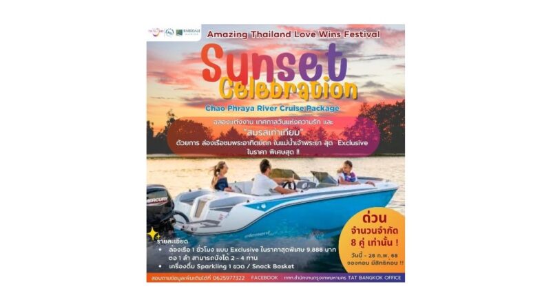ริเวอร์เดล มารีน่า ร่วมกับ ททท. ชวน 8 คู่รัก กุมมือส่งมอบความรักกับกิจกรรม Sunset Celebration Chao Phraya River Cruise Package สุดโรแมนติก