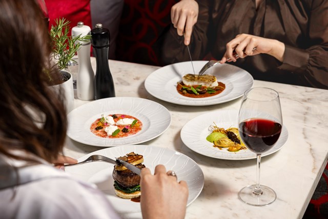 สำหรับเมนูจานหลัก สามารถเลือกได้ระหว่างสเต็กเนื้อสันในวากิวออสเตรเลีย (Filetto di Manzo “alla Rossini”) ทานคู่กับขนมปังบรียอช ผักโขมผัด ฟัวกราส์ คาร์ปาชโชเห็ดทรัฟเฟิล และซอสสเต็ก หรือปลาหิมะจากมหาสมุทรแอตแลนติกย่างกระทะทานคู่กับซอสปุตตาเนสกาของอิตาลีดั้งเดิม (Pan Seared Atlantic Toothfish Puttanesca Style) นำเสนอรสชาติอันมีชีวิตชีวาแบบฉบับทะเลเมดิเตอร์เรเนียนผ่านซอสรสเข้มข้นจากมะเขือเทศ มะกอก เคเปอร์ ปลาแอนโชวี่ กระเทียม และพริก ปิดท้ายเซตเมนูซิกเนเจอร์ด้วยของหวานอย่างทีรามิสุช็อกโกแลตเข้มข้น (Deconstructed Valrhona Tiramisu) ทานคู่กับไอศกรีมรสกาแฟและเมล็ดโกโก้กรุบกรอบ เสิร์ฟในรูปแบบที่แปลกใหม่แต่ยังคงรสชาติแบบดั้งเดิม