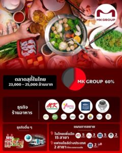 MK GROUP หรือ บริษัท เอ็มเค เรสโตรองต์ กรุ๊ป จำกัด (มหาชน) ผู้นำตลาดสุกี้ในประเทศไทยที่ครองส่วนแบ่งกว่า 60% จากมูลค่ารวมตลาดกว่า 23,000 – 25,000 ล้านบาท พร้อมตอกย้ำศักยภาพในการดำเนินธุรกิจ ด้วยการเดินหน้าชูกลยุทธ์ Value Strategy ในปี 68 มุ่งเน้นตอบโจทย์ผู้บริโภคและประสบการณ์ใหม่ให้กับผู้บริโภค รวมถึงการปรับโมเดลแบรนด์ในเครือ เสริมทัพด้วยแบรนด์ใหม่ ๆ เพื่อช่วยกระตุ้นความสนใจทั้งกลุ่มลูกค้าเดิมและกลุ่มลูกค้าใหม่ จนสามารถสร้าง engagement ได้อย่างต่อเนื่อง