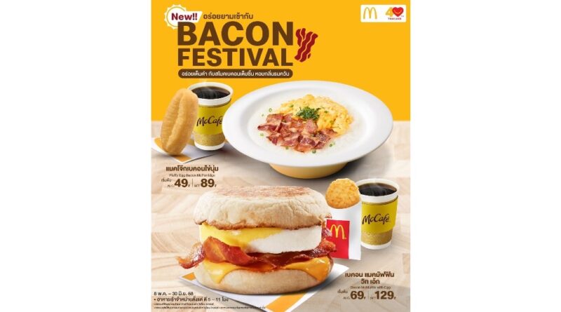 แมคโดนัลด์ เปิดตัวเมนูมื้อเช้าใหม่ แคมเปญ “Bacon Festival” ‘แมคโจ๊กเบคอนไข่นุ่ม’ และ ‘เบคอน แมคมัฟฟิน วิท เอ้ก’ อร่อยเต็มคำกับสโมคเบคอนเต็มชิ้น