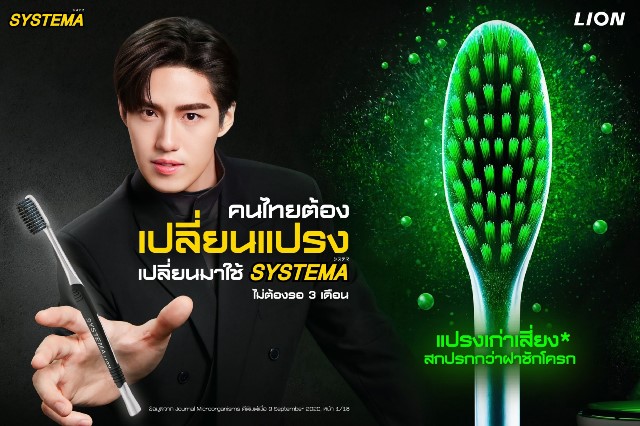 ไลอ้อน ประเทศไทย โดย SYSTEMA เดินหน้ารณรงค์เพื่อสุขภาพช่องปากคนไทยอย่างต่อเนื่อง โดยเปิดตัวแคมเปญใหม่ “คนไทยต้องเปลี่ยนแปรง” สะท้อนพฤติกรรมเสี่ยงของคนไทยที่ยังใช้แปรงสีฟันเก่าเกินกว่า 3 เดือน ซึ่งนอกจากประสิทธิภาพในการทำความสะอาดจะลดลงแล้ว ยังกลายเป็นแหล่งสะสมเชื้อโรคมากถึง 10 ล้านตัว ซึ่งสกปรกยิ่งกว่าฝาชักโครกโดยไม่รู้ตัว