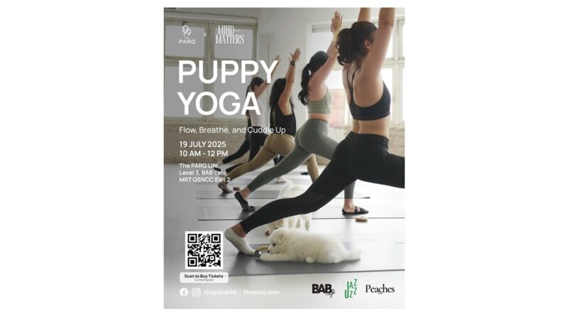 เติมพลังให้ร่างกายและรีเฟรชจิตใจกับกิจกรรมสุดพิเศษ Puppy Yoga ที่ เดอะ ปาร์ค (The PARQ) ร่วมกันกับ Mind Over Matters ชวนทุกคนมาสัมผัสประสบการณ์ สร้างโมเมนต์ดี ๆ ร่วมกัน ฉลองเดือนแห่งการส่งเสริมสุขภาวะทางสังคม (Social Wellness Month) ผ่านกิจกรรมโยคะกับเหล่าสุนัขตัวน้อย ที่ เสริมสร้างความสมดุลทั้งร่างกายและจิตใจภายใต้คอนเซ็ปต์ Life Well Balanced เชื่อมต่อความสัมพันธ์ที่ดีต่อกันในบรรยากาศอบอุ่นหัวใจ พร้อมสัมผัสความน่ารักของเหล่าสุนัข ในวันเสาร์ที่ 19 กรกฎาคม 2568