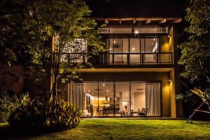 วิลล่าสไตล์ร่วมสมัยแห่งนี้ตั้งอยู่ในจังหวัดนครราชสีมา—จุดหมายปลายทางที่ขึ้นชื่อเรื่องธรรมชาติอุดมสมบูรณ์และยังเป็นที่ตั้งของอุทยานแห่งชาติที่เก่าแก่ที่สุดของประเทศไทย—พร้อมมอบประสบการณ์การพักผ่อนสุดหรูสำหรับกลุ่มเพื่อนหรือครอบครัวเล็กๆ ที่ต้องการหลีกหนีจากความวุ่นวายในเมือง พื้นระเบียงไม้กลางแจ้งและประตูกระจกบานใหญ่สูงจรดเพดาน ช่วยเปิดรับทัศนียภาพได้แบบเต็มตา เหมาะอย่างยิ่งกับการเป็นจุดชมวิวไดโนเสาร์