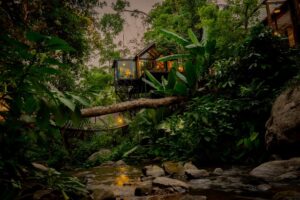 ที่พักแห่งนี้ได้รับการออกแบบให้กลมกลืนกับธรรมชาติในจังหวัดเชียงใหม่อย่างลงตัว ตั้งอยู่เหนือหน้าผาน้ำตก เหมาะสำหรับการหลีกหนีจากชีวิตที่เร่งรีบ แล้วเพลิดเพลินไปกับวิวทิวทัศน์น่าตื่นตาตื่นใจจากในกระท่อม แต่อย่าลืมระวังแขกจากยุคดึกดำบรรพ์ เพราะเจ้าไทรเซราทอปส์อาจมากระโดดเล่นน้ำในลำธาร ส่วนคอยาวๆ ของดิพโพลโดคัสอาจจะโผล่มาอยู่ข้างๆ เหนือหน้าผาน้ำตกก็เป็นได้ เพราะที่นี่เป็นแหล่งอาหารชั้นดีของไดโนเสาร์ยังไงล่ะ!