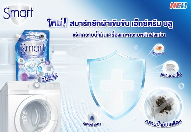 สมาร์ท (Smart) ผลิตภัณฑ์ซักผ้ามาตรฐานสากล แบรนด์แรกในไทยที่พัฒนาผลิตภัณฑ์ซักผ้าสูตรเข้มข้น ที่มีคุณสมบัติขจัดคราบน้ำมันเครื่อง ภายใต้บริษัท นีโอ คอร์ปอเรท จำกัด (มหาชน) ส่งผลิตภัณฑ์ซักผ้าชนิดน้ำเข้มข้นสูตรใหม่! “สมาร์ท ซักผ้าสูตรเข้มข้น เอ็กซ์ตรีม บลู” (Smart Concentrated Liquid Detergent Extreme Blue) แบรนด์แรกและแบรนด์เดียวในไทยที่กล้าการันตีสามารถขจัดคราบน้ำมันเครื่องได้อย่างมีประสิทธิภาพ ขจัดกลิ่นอับ พร้อมกลิ่นหอมสะอาดสดชื่น สำหรับทุกเพศทุกวัย เพิ่มความมั่นใจทุกครั้งที่สวมใส่