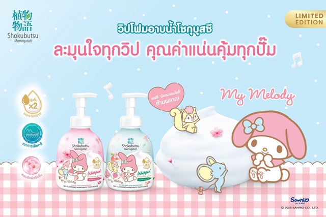 พบกับ วิปโฟมอาบน้ำ โชกุบุสซึ X My Melody วางจำหน่ายแบบ Limited แค่ช่วงนี้เท่านั้น (ตั้งแต่วันนี้ – 31 ธันวาคม 2568 หรือจนกว่าสินค้าจะหมด) ในช่องทางร้านค้าตัวแทนจำหน่ายทั่วประเทศ
